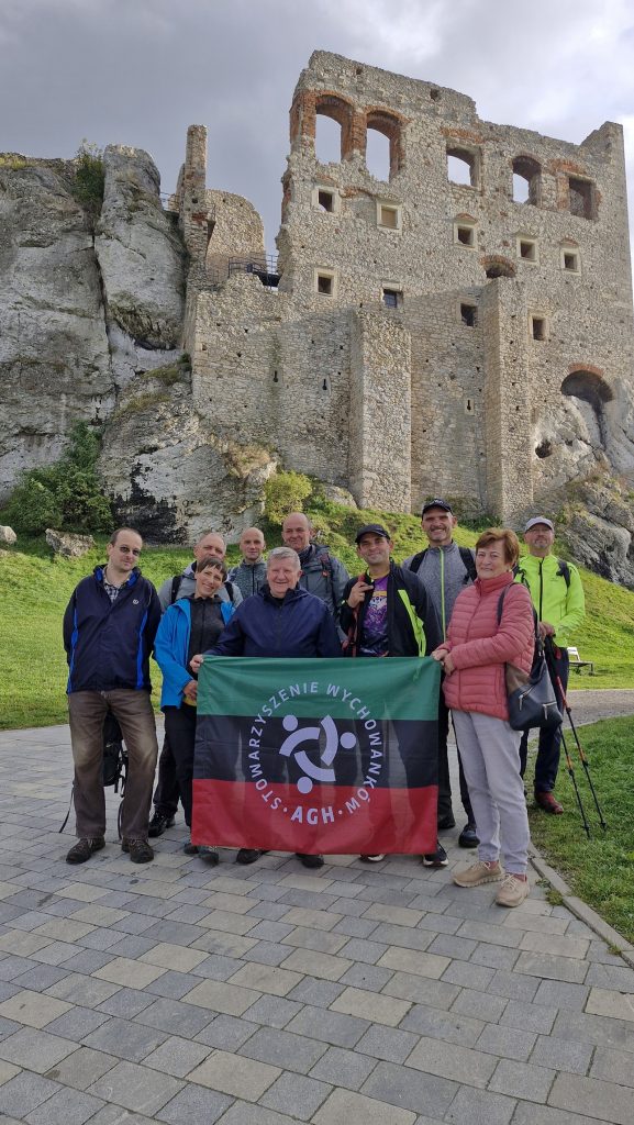 Zamek Ogrodzieniec to finał naszej wędrówki. Na końcu trasy czekała nas niezwykle miła niespodzianka w postaci (dosłownie) profesora Piotra Czai – Prezesa SW AGH, który wraz z małżonką specjalnie przyjechał z Krakowa aby strudzonych wędrowców osobiście powitać na mecie rajdu i podziękować im za trud.