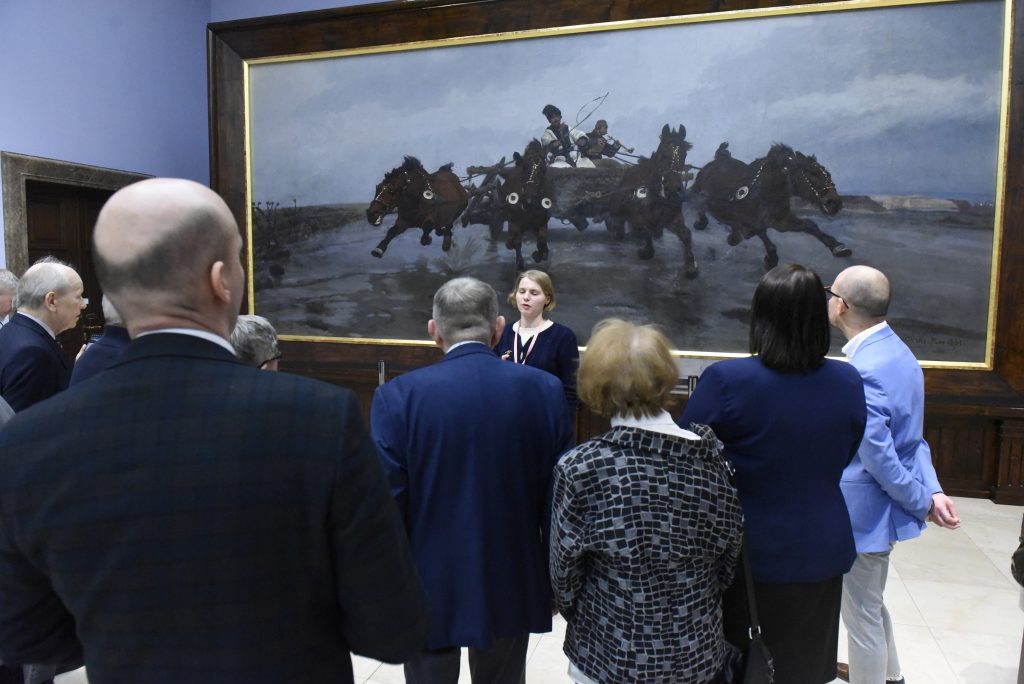 Spotkanie miało dwie odsłony – pierwsza kulturalno turystyczna jaką była wizyta w Galerii Sztuki Polskiej XIX wieku Muzeum Narodowego Krakowa w Sukiennicach. Warto w tym miejscu przybliżyć kilka podstawowych informacji – tym członkom stowarzyszenia, którzy jeszcze tego miejsca nie odwiedzili. Na stronie internetowej Galerii (mnk.pl/wystawy/galeria-sztuki-polskiej-xix-wieku-w-sukiennicach) znajdziemy następujący opis: